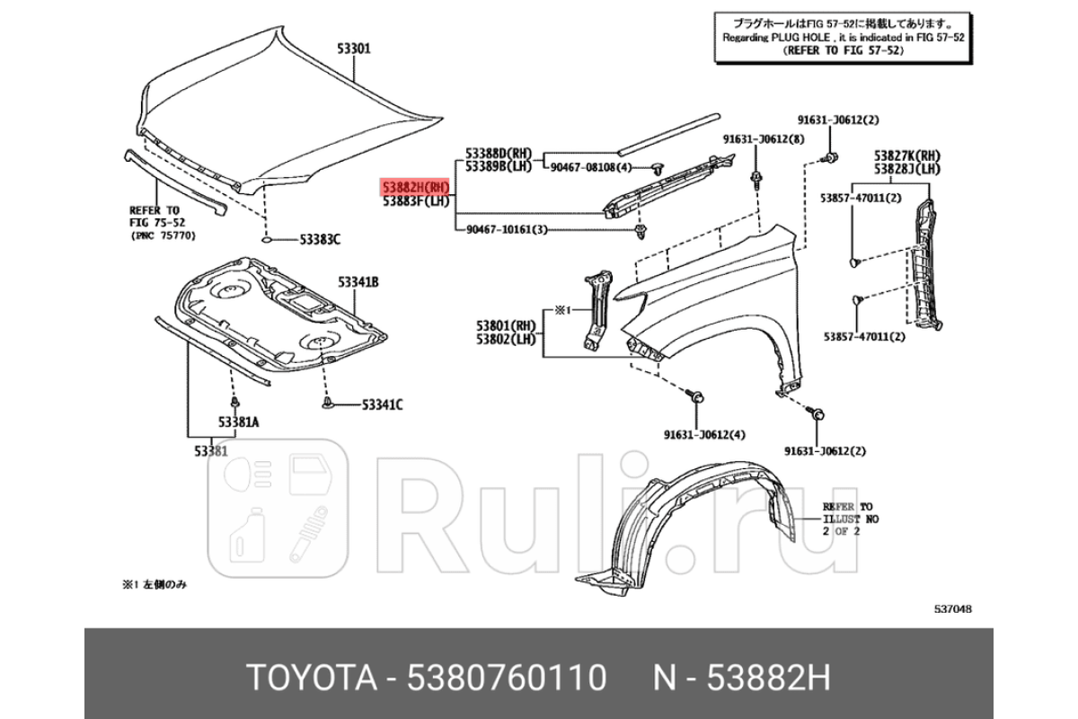 53807-60110 - Уплотнитель переднего крыла правый (TOYOTA-LEXUS) Toyota Land Cruiser Prado 150 (2009-2013)