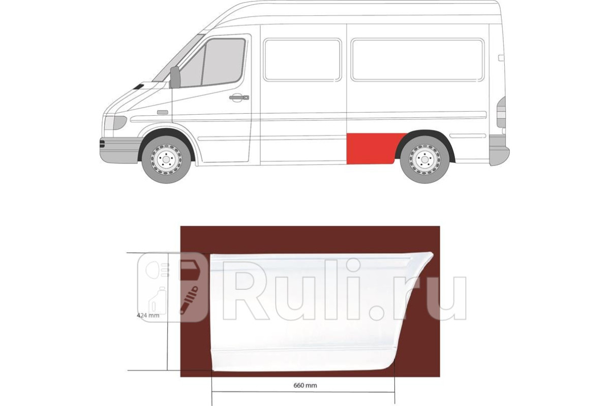 Особенности: передняя часть (до колеса), для авто со средней базой