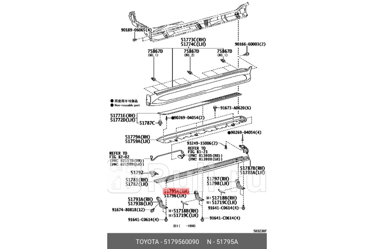 51795-60090 - Кронштейн подножки правый (TOYOTA-LEXUS) Toyota Land Cruiser 200 (2007-2012)